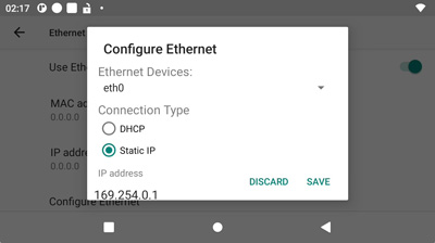 If using DHCP, no further setup should be required (Ethernet w/ DHCP is enabled by default). If using Static, continue to the next steps.